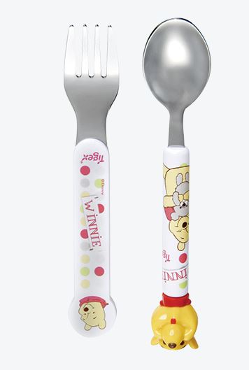 leurs décors coordonnés au service Winnie avec en bonus rigolo la tête de Winnie en 3D sur le manche de la cuillère