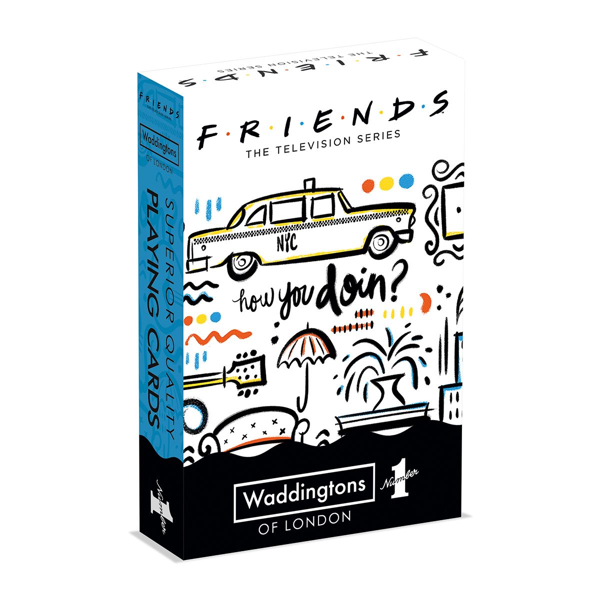 Retrouvez le traditionnel jeu de 54 cartes personnalisé à l'univers de Friends : découvrez Monica, Chandler, Rachel et les autres à l'intérieur de votre paquet !