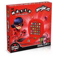 Dans le jeu de société Match, jouez avec les héros du dessin animé Miraculous : LadyBug et Chat Noir.