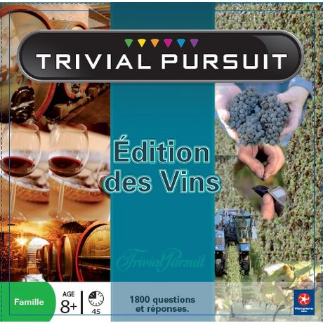 Trivial Pursuit est le jeu de société idéal pour développer sa culture générale tout en partageant des instants de jeu conviviaux entre amis ou en famille. Le Trivial Pursuit est un grand classique incontournable des jeux de société type questions-réponses. Trivial Pursuit édition des vins, un jeu à consommer sans modération ! Un cadeau idéal pour les passionnés d’œnologie !