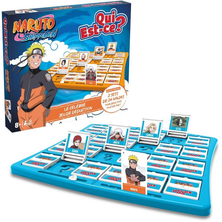 Le célebre jeu de déduction arrive dans l'univers Naruto ! Retrouve Naruto tous ses amis dans ce QUI EST CE? Naruto Shippuden et tente de deviner le personnage mystere que cache ton adversaire. 24 personnages issus de la série d'animation t'attendent dans ce jeu de société, tels que Sasuke, Itachi,