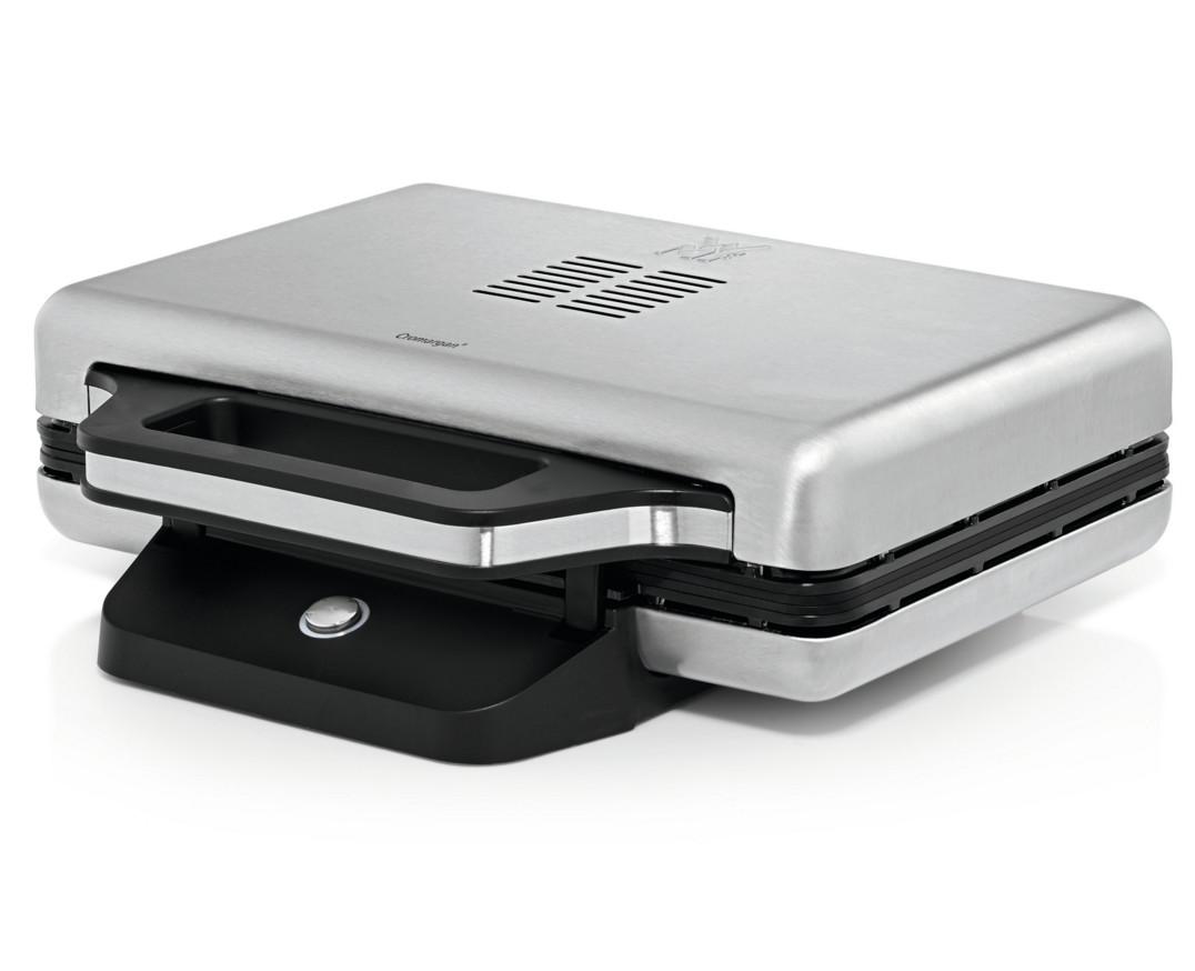 Wmf 415150011 Le Lono Wmf 415150011 est un appareil de qualité pour des croque-monsieur XXL. Chaque croque-monsieur est unique : altique, vegan, sans gluten, à deux étages... la créativité n'a pas de limite ! Vous avez composé votre croque-monsieur préféré ? Il ne vous reste plus qu'à le placer dans l'appareil à croque-monsieur WMF Lono, à le laisser dorer et votre délicieux en-cas est prêt. Que vous aimiez les croque-monsieur XXL, ou à plusieurs étages avec de multiples garnitures, l'ajustement à deux hauteurs et les plaques extra-larges vous permettent de préparer tous types de croque-monsieur en quelques minutes. L'appareil à croque-monsieur WMF Lono est l'emblème de la cuisine rapide d'aujourd'hui.Appareil à croque-monsieur pour réaliser 2 croque-monsieur de taille standard ou XXL (taille standard : 130 x 130 mm). Design élégant grâce au revêtement Cromargan mat : inox de haute qualité (18/10). Poignée de fermeture réglable et ajustement à deux hauteurs en fonction de l'épaisseur du croque-monsieur. Gain de place grâce au rangement vertical, à l'enrouleur de câble intégré et au compartiment pour la prise. Nettoyage facile grâce au revêtement antiadhésif des plaques.