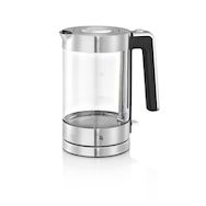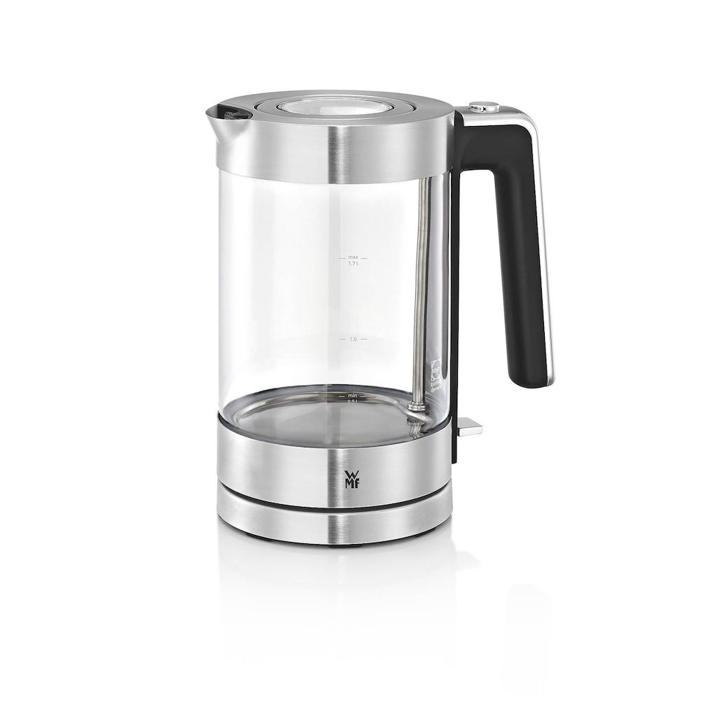 Wmf 0413150011 La transparence du verre de la bouilloire sans fil Lono 0413150011 de Wmf montre la vitesse à laquelle sa puissance de 3 000 watts fait bouillir l'eau ! Le verre Schott DURAN® est résistant à la chaleur, stable, neutre en goût et facile à nettoyer. Cette bouilloire sans fil a tout pour vous convaincre : elle produit jusqu'à 1,7 litre d'eau chaude, son couvercle amovible pratique s'ouvre d'une seule main par simple pression, elle a un indicateur de niveau d'eau extérieur. Comme toutes les bouilloires WMF, la version en verre Lono offre également une parfaite sécurité grâce à la protection contre la surchauffe et le fonctionnement à vide, l'arrêt automatique à ébullition et le verrouillage du couvercle.Bouilloire sans fil avec base séparée incluant le rangement du câble. Élément chauffant dissimulé.Grâce à la transparence du verre, vous pouvez surveiller la vitesse à laquelle l'eau bout.Verre Schott DURAN® résistant à la chaleur, stable, neutre en goût et facile à nettoyer.Sécurité assurée grâce à la protection contre la surchauffe et le fonctionnement à vide, l'arrêt automatique à ébullition et le verrouillage du couvercle.Filtre anti-calcaire externe amovible et lavable.