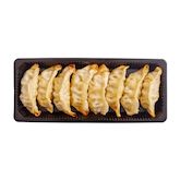 Ingrédients : Garniture 70% (Thaïlande) : chou blanc, viande de poulet 20% (origine : Thaïlande), oignon, ciboulette, huile de #SOJA#, farine de #BLE# (#GLUTEN#), ail, sauce #SOJA# (eau, germe de #SOJA#, #BLE# (#GLUTEN#), sel, alcool), sucre, protéines végétales hydrolysées (maïs, germe de #SOJA#), sel, poudre de poivre blanc. Pâte de gyoza 30% (Thaïlande) : mélange de farine de gyoza (farine de #BLE#, amidon modifié E1420, amidon de tapioca), eau, huile de #SOJA#, épaississant E415.