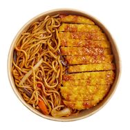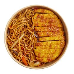 Poulet katsu et nouilles sautées