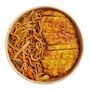 Ingrédients : nouilles de sarrasin soba 59% (farine de #blé#, eau, farine de sarrasin 22%, sel), champignon noir, carotte, ail, oignon, poireau, sauce SOJA au champignon (eau, SOJA, farine de BLE, sel, sucre, extrait dechampignon), sauce SOJA allégée en sel ((eau, graines de SOJA, sel, vinaigre (riz, eau)), eau, acidifiant : acide lactique, conservateur : sorbate de potassium, BLE), Sauce HUÎTRE (Eau 42.15%, HUÎTRE 20%, sel 17%, sucre 13%, épaississants :E1442 3.5%, sirop de fructose 3%, exhausteur de goût : E621 1%, E631et E627 0.05%, stabilisant : E415 0.1%, conservateur : E211 0.1%, acide alimentaire : E575 0.05%, colorant : E150c 0.05%.), monosodium glutamate, Huile de SESAME, épices (sel, poivre, sucre, glutamate). Poulet cuit pané : viande de poulet (origine : UE non UK) 55%, enrobage [farine de BLE, huile de tournesol, eau, sel, levure, sucre, gluten de BLE, albumine d’oeuf, amidon transformé de BLE], eau, huile de colza, protéine de SOJA, fibres de pois, sel, stabilisant (E451), amidon de maïs modifié, oignon, oignons frits (oignon 76%,huile végétale, farine de BLE, sel), vinaigre de riz (eau, ALCOOL, riz, extrait de saké, sel, sucre), mayonnaise (huile de colza, eau, vinaigre d’alcool, jaunes d’ŒUFS 5% (jaunes d’ŒUFS, sel, sirop de glucose), MOUTARDE de Dijon (eau, graines de MOUTARDE, vinaigre d’alcool, sel, conservateur : BISULFITE de sodium), sel, dextrose de maïs, conservateur : sorbate de potassium, acidifiant : acide citrique, stabilisateur : gomme guar, colorant : béta-carotène), MOUTARDE (eau, graines de MOUTARDE,vinaigre d'alcool, sel, antioxydant : DISULFITE de potassium, acidifiant : acide citrique), vinaigre (eau, ALCOOL,riz, extrait de saké, sel, sucre), oignons, sel, sucre, oignons frits (oignon 76%,huile végétale, farine de BLE, sel), SAUCE TERIYAKI : sauce SOJA 35% (origine non UE) (eau), graines de SOJA, BLE, alcool (éthanol)), sucre, eau, amidon modifié de maïs, purée d’oignon, assaisonnement, jus de pomme concentré, poudre d’ail, jus de citron concentré