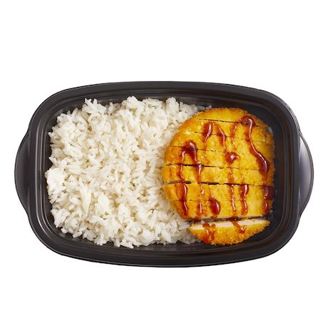 "Ingrédients : Riz, ail, sel, huile de colza, sucre, acidifiant : acide citrique, huile de tournesol. Poulet cuit pané : viande de poulet (origine : UE non UK) 55%, enrobage [farine de BLE, huile de tournesol, eau, sel, levure, sucre, gluten de BLE, albumine d’oeuf, amidon transformé de BLE], eau, huile de colza, protéine de SOJA, fibres de pois, sel, stabilisant (E451), amidon de maïs modifié, carotte, salade, oignon, oignons frits (oignon 76%,huile végétale, farine de BLE, sel), graine de SESAM, sel, vinaigre de riz (eau, ALCOOL, riz, extraitde saké, sel, sucre), ciboulette, graine de SESAME. Mayonnaise (huile de colza, eau, vinaigre d’alcool, jaunes d’ŒUFS 5% (jaunes d’ŒUFS, sel, sirop de glucose), MOUTARDE de Dijon (eau, graines de MOUTARDE, vinaigre d’alcool, sel, conservateur : BISULFITE de sodium), sel, dextrose de maïs, conservateur : sorbate de potassium,acidifiant : acide citrique, stabilisateur : gomme guar, colorant : béta-carotène), MOUTARDE (eau, graines de MOUTARDE, vinaigre d'alcool, sel, antioxydant : DISULFITE de potassium, acidifiant : acide citrique), vinaigre (eau,