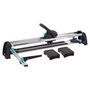 La plaque de base en aluminium est tres stable et rigide. La roue de coupe avec un diametre de 20 mm et un alesage de 5 mm est en carbure de tungstene et en etain. La longueur de coupe est de 67 cm et l'epaisseur du carreau est comprise entre 4 et 14 mm. Un resultat de coupe parfait est realise en trois etapes : ajustez l'epaisseur du carreau et la pression de surface , faites une coupe douce et continue et cassez facilement le carreau sans beaucoup d'effort. Cet outil necessite peu d'entretien et est tres precis grace a ses roulements a billes et ses rails en C, ainsi qu'au guidage special pour la coupe diagonale.