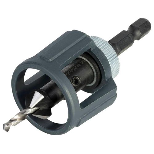 Il comprend un arret reglable de profondeur avec des positions de reglage fixes pour les vis a tete fraisee d'un diametre de filetage allant jusqu'a 6 mm.