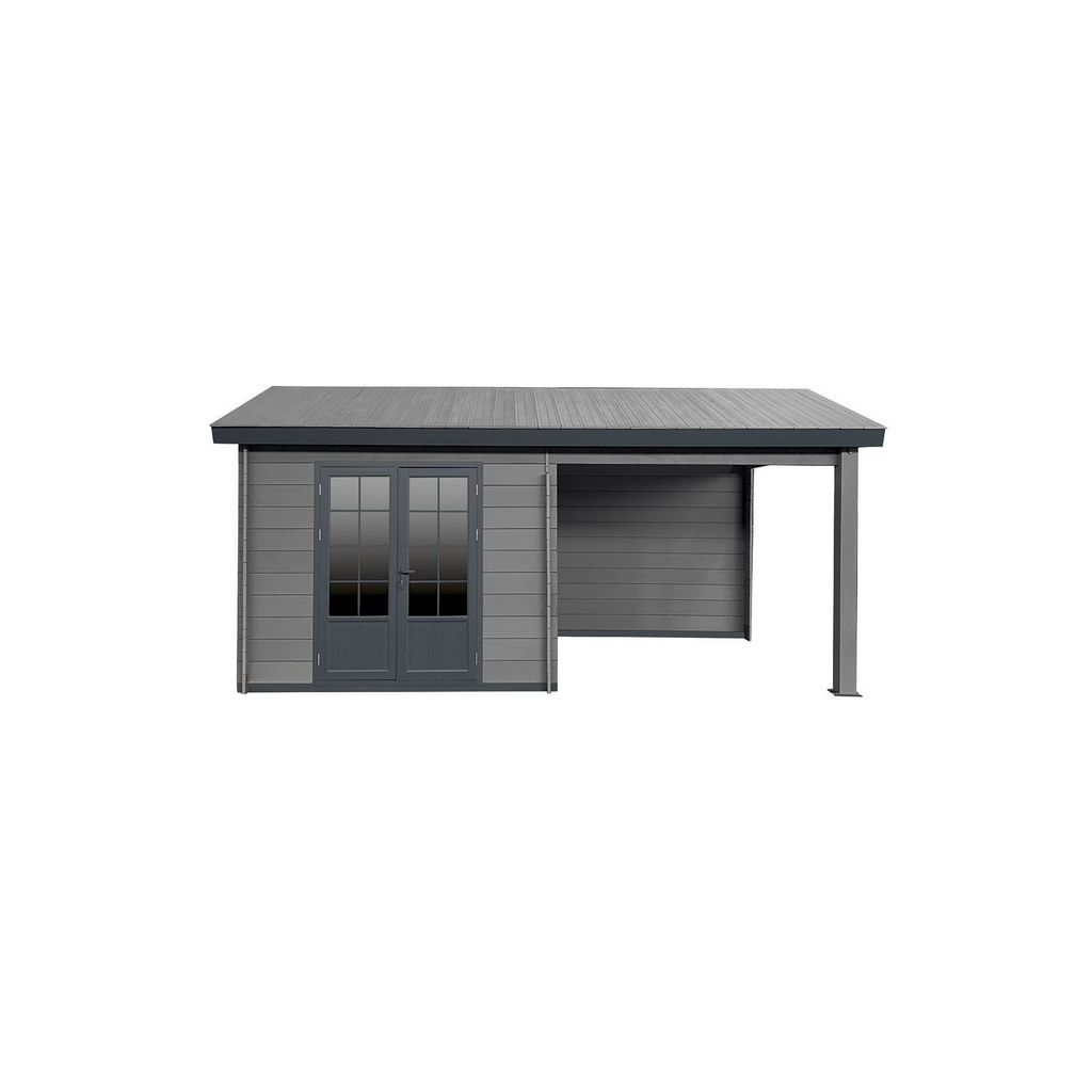 Abri de jardin composite 9m2+terrasse 9m2 - gris
