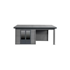 Abri de jardin de 14,4m² en composite de grande qualité. Le montage facilité par des madriers emboités de 28mm d'épaisseur assurent une grande robustesse à cet abri. La terrasse couverte permet le stockage de matériel encombrant ou la dispostion d'un salon de jardin . Double porte en aluminium avec