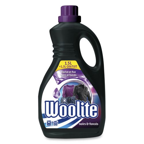 Avec Woolite Noirs et Foncés, préservez les formes et les couleurs de vos vêtements foncés. Woolite noir et foncés 1.5L+1.5L gratuit