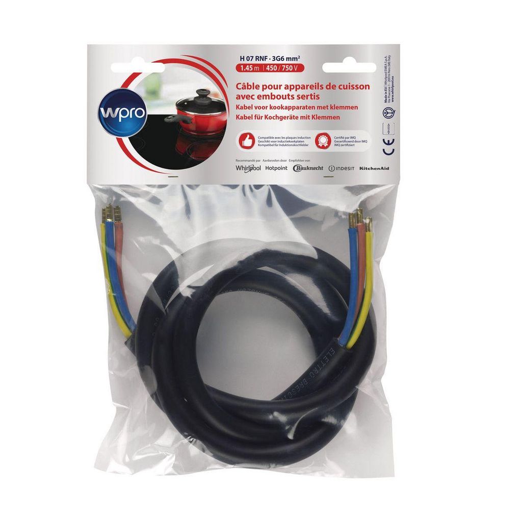 Avantages : Cable éléctrique sans prise pour appareil de cuisson Largeur produit (cm) : 15 Utilisable en : France Coloris : Noir