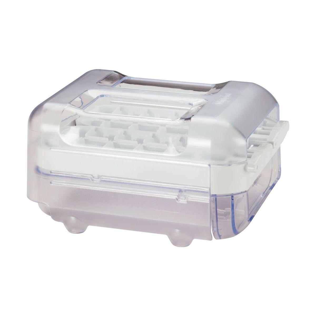 | A quoi ça sert ? | A positionner dans votre congélateur, la fabrique à glaçons WPRO est simple d'utilisation. Remplissez les deux bacs d'eau, une fois les glaçons formés, tournez les deux poignées pour qu'ils se déversent dans le réceptacle. | |
