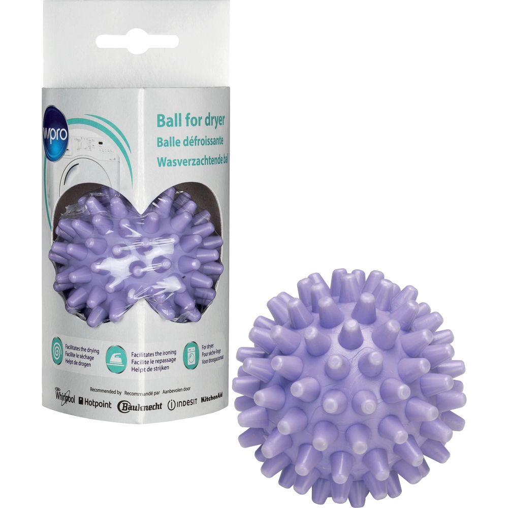 Wpro WBA101 Balle défroissante pour sèche-linge Wpro WBA101. Défroisse le linge pendant le cycle de séchage, facilitant ainsi le séchage et le repassage. Grâce à son action mécanique assouplissante, la boule défroissante soulève et sépare le linge pendant le séchage, en aérant ainsi les fibres. Plac