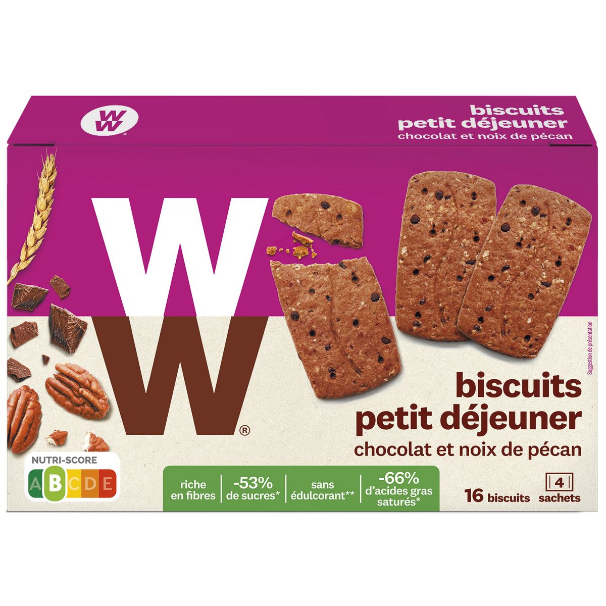 Pour un petit déjeuner ultra gourmand, savourez ces biscuits chocolat et noix de pécan, riches en fibres ! Un biscuit qui a tout pour plaire, des céréales pour les fibres, du chocolat et des noix de pécan pour plus de gourmandise ! Avec un yaourt nature et un fruit frais de saison, c'est le partenaire idéal pour votre petit déjeuner !