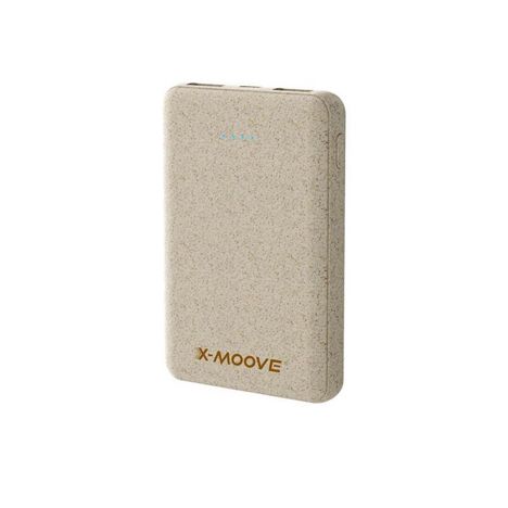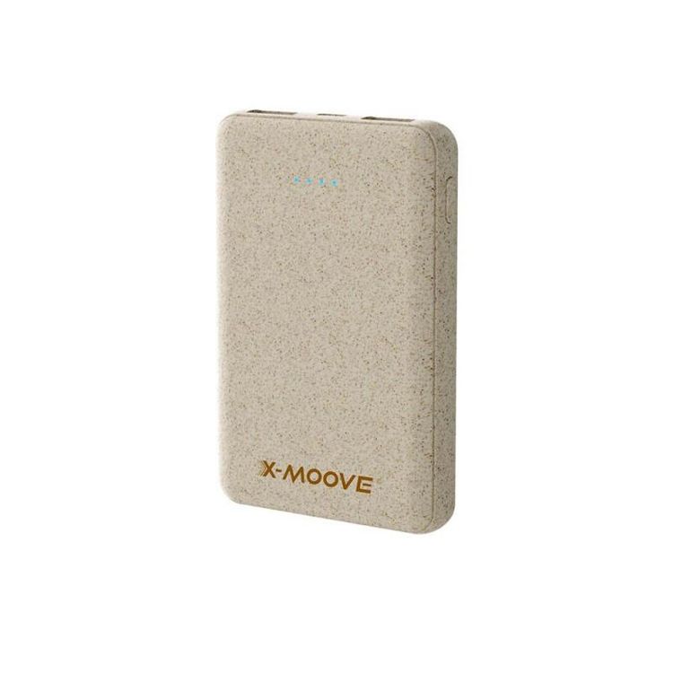 La batterie externe X Moov Powereco allie portabilité et performance grâce à son format ultra-compact (environ 9,5 cm) et son poids plume. Son design beige épuré s'adapte à tous les styles, tandis que sa coque partiellement conçue en fibre de blé témoigne d'une démarche écoresponsable.