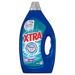 La lessive n°1 en France* / *Ventes en volume litrage sur le marché des lessives universelles (marques nationales). Circana 2013-2024 Efficace dès 20°C, X-TRA élimine les taches les plus tenaces tout en préservant l'éclat de votre linge. Pour un linge impeccable, toujours à prix X-TRA !