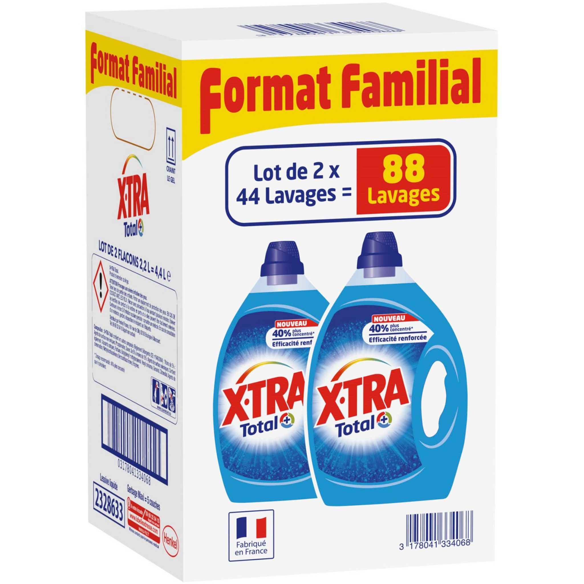 X-Tra lessive diluée total 2x2,2l format familial