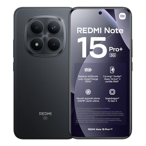 XIAOMI Redmi Note 15 Pro+ 5G Noir 256Go : Performance, Photo et Autonomie Redéfinies