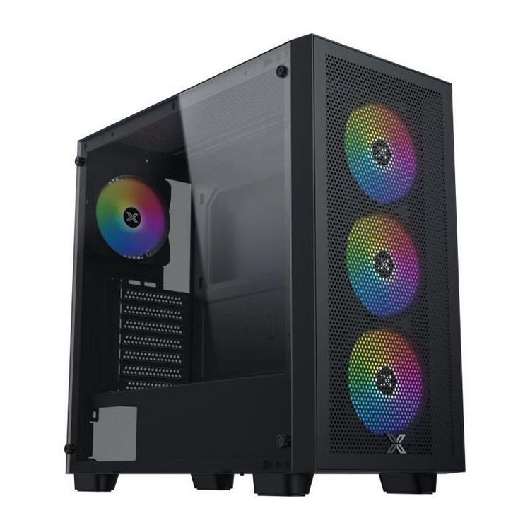 Le boîtier PC XIGMATEK Gaming Z Pro allie esthétique gaming et fonctionnalité avec son panneau latéral en verre trempé offrant une vue imprenable sur vos composants. Son design noir sobre et sa façade mesh apportent une touche moderne, tandis que l'éclairage ARGB des ventilateurs crée une ambiance immersive personnalisable.