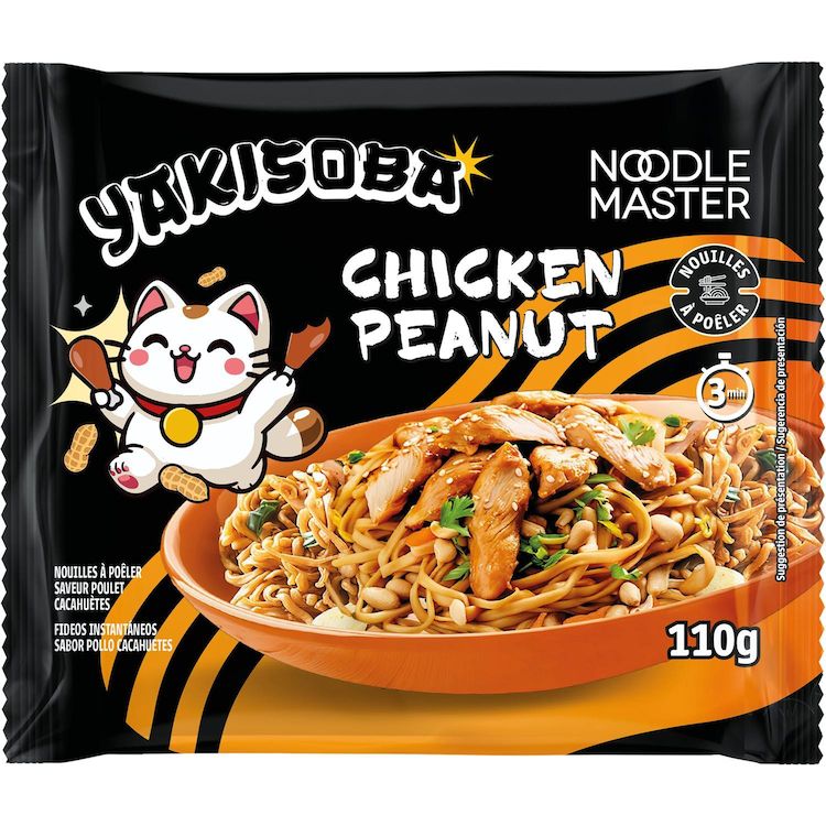 Nouilles asiatiques à poêler saveur poulet cacahuètes