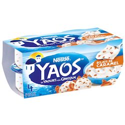 Yaourt brassé sucré au lait entier, aux copeaux de caramel , aromatisé