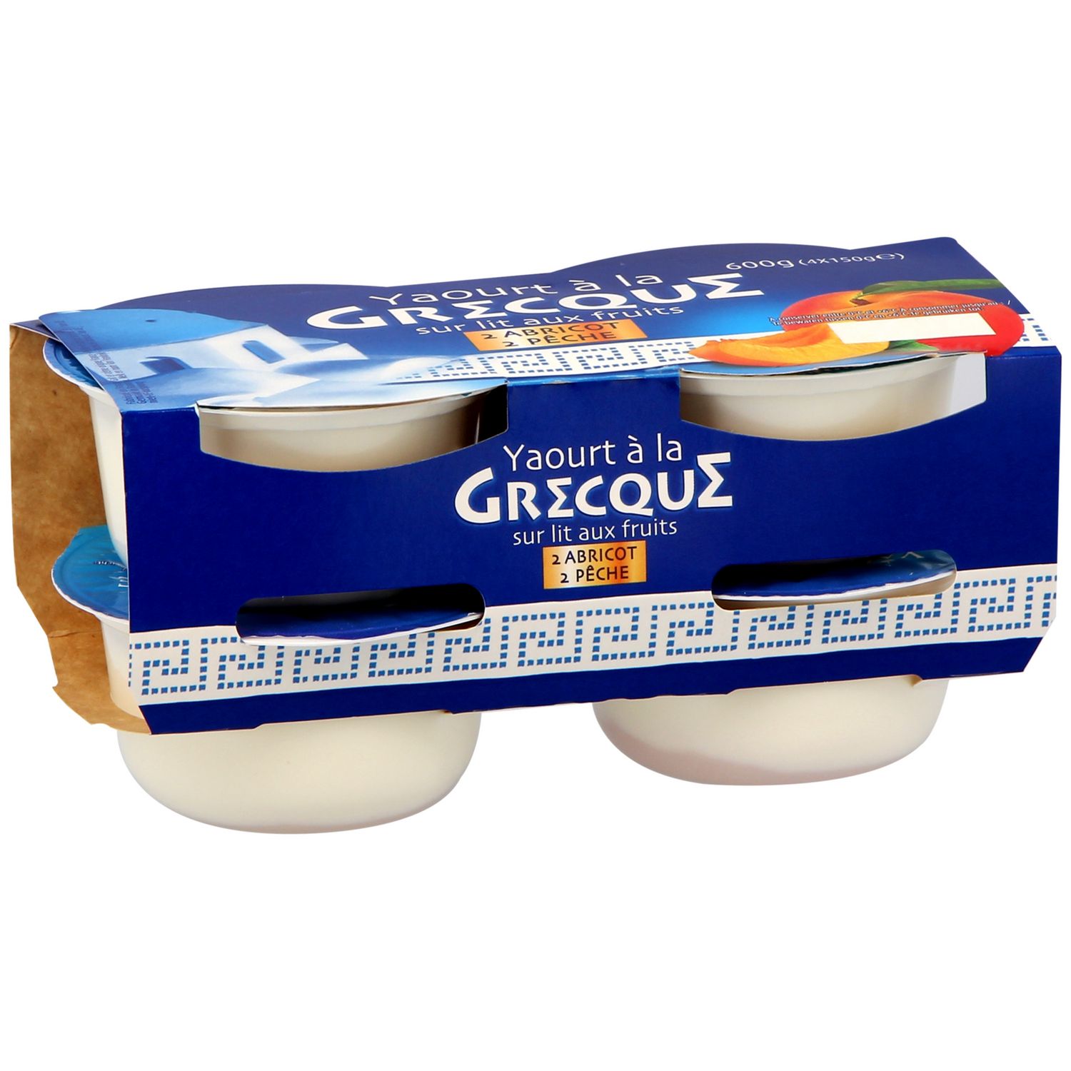 Yaourt à la grecque sur lit de fruits abricots et pêche