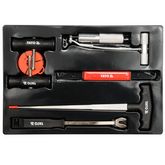Ce kit d'enlevement professionnel de pare-brise contient 7 pieces. Il convient a l'enlevement des vitres collees de voiture. Le kit contient tous les outils necessaires a la decoupe de masse de colle vinylique et d'urethane autour des vitres de voiture. Materiau : CrV 65Durete : 38 - 42 HRCL'ensembl