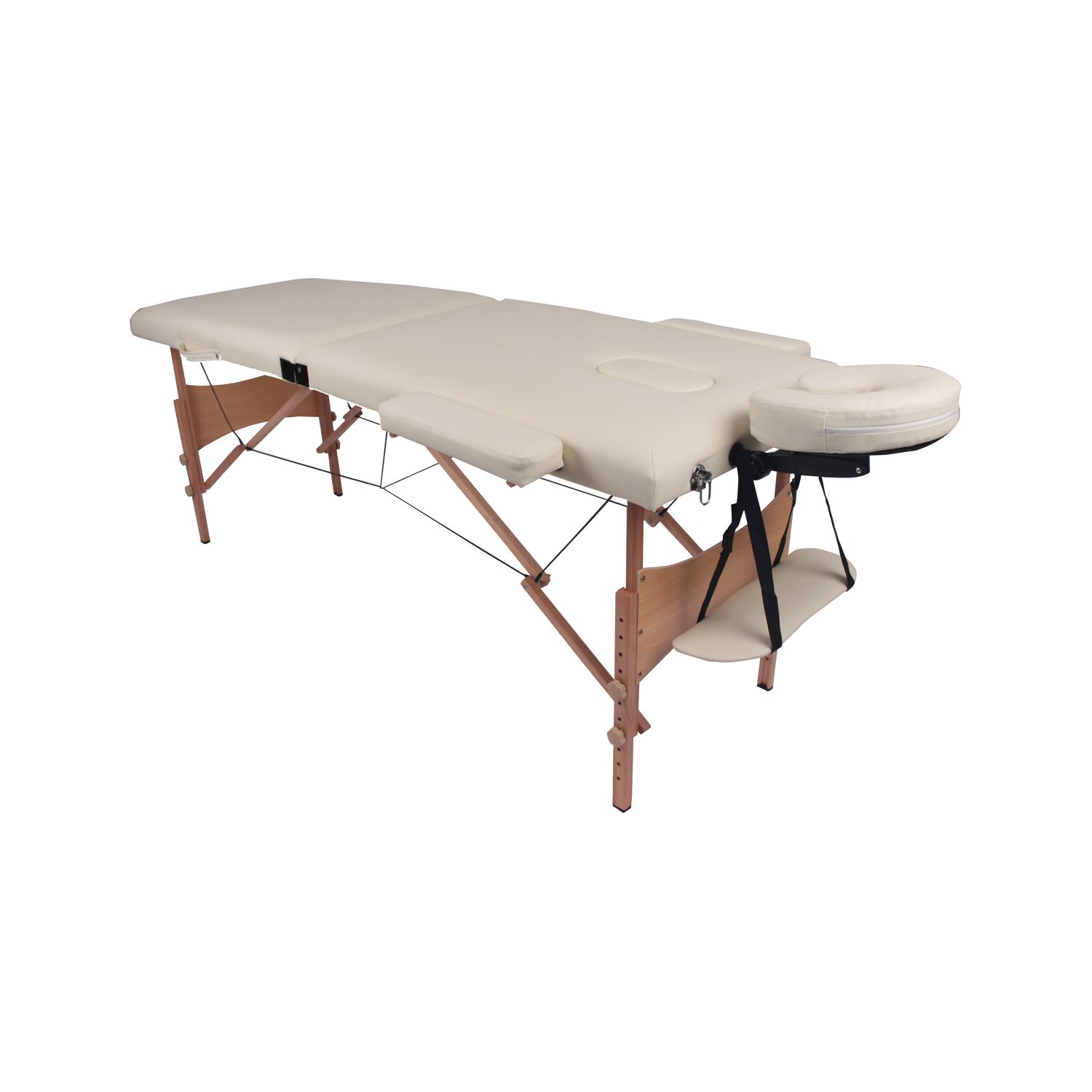 Les câbles métalliques sont recouverts de plastique pour une stabilité maximale. Pour votre sécurité, une stabilité accrue est assurée grâce à des pieds en bois massif hêtre anti-dérapants. Le poids maximum par utilisateur est de 125 kg et la charge de travail maximum est de 225 kg répartis.La dimension (L×P×H) de la table est de 215 × 80.5 ×(62-84.5) cm. La dimensions de la surface de couchage (L×P) est de 185 × 60 cm.