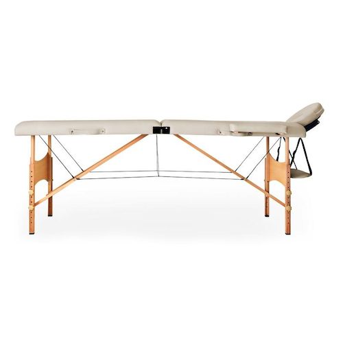 Yoghi - Tdm102 Cream - Table De Massage Pliante 2 Zones - Bois De Hêtre - Dossier Réglable - Housse De Transport Incluse
