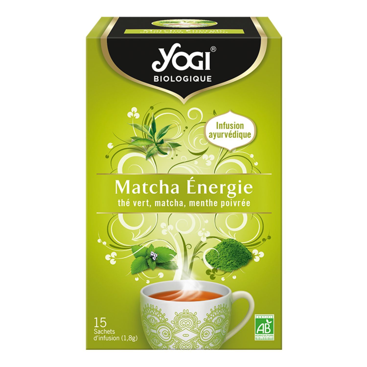 Infusion bio ayurvédique Matcha Energie thé vert menthe poivrée