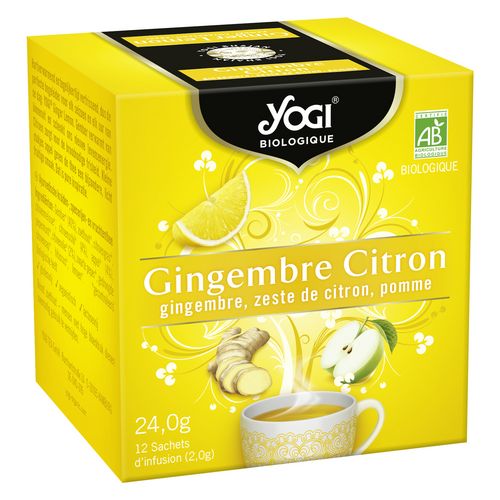 Gingembre* (40%), réglisse*, citronnelle*, mélisse*, zeste de citron* (4%), pomme* (4%), menthe poivrée*, huile essentielle de citron* (2%), poivre noir*, jus de citron séché*, hibiscus*, citron vert*. *agriculture biologique