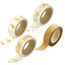 Voici un kit de 4 masking tapes : Masking tape blanc à traineau doré, Masking tape blanc à étoiles dorées, Masking tape blanc à sapin doré 10 m, Masking tape à paillettes 15 mm x 5 m