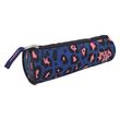 Trousse scolaire ronde polyester imprimé animalier bleu et rose