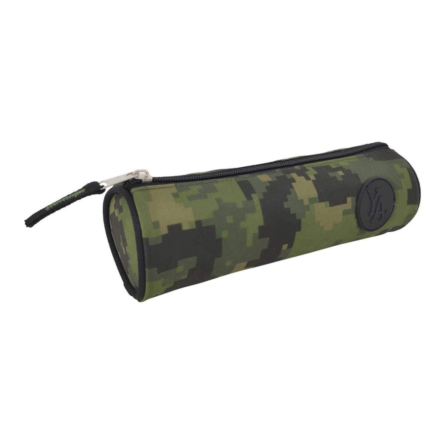 Motif et couleurs tendance sont les atouts de cette trousse scolaire ronde Young’s Attitude qui se pare d’un imprimé camouflage kaki façon pixel rehaussé d’un logo et de finitions contrastées pour apporter une touche de style supplémentaire et d’une tirette assortie qui perme