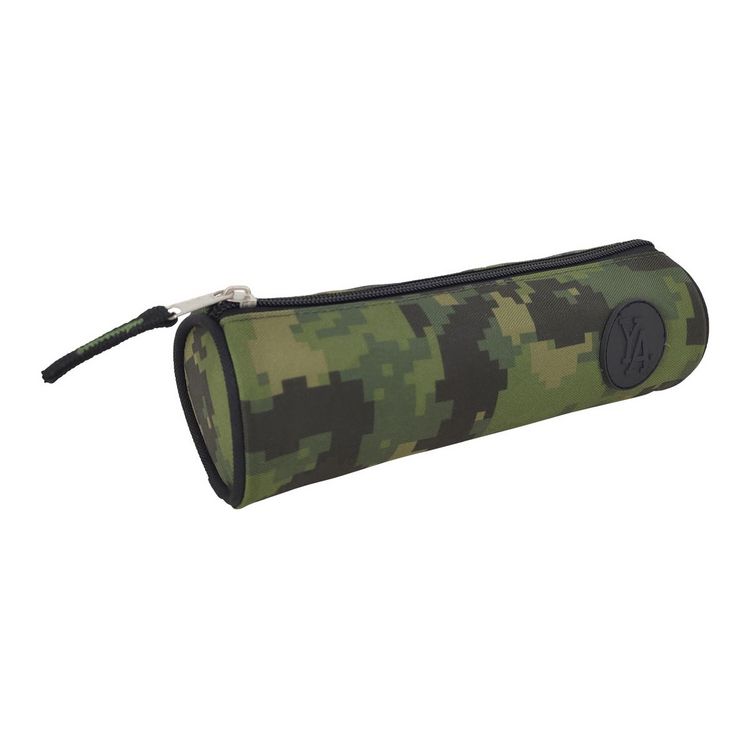 Trousse scolaire ronde polyester imprimé camouflage kaki