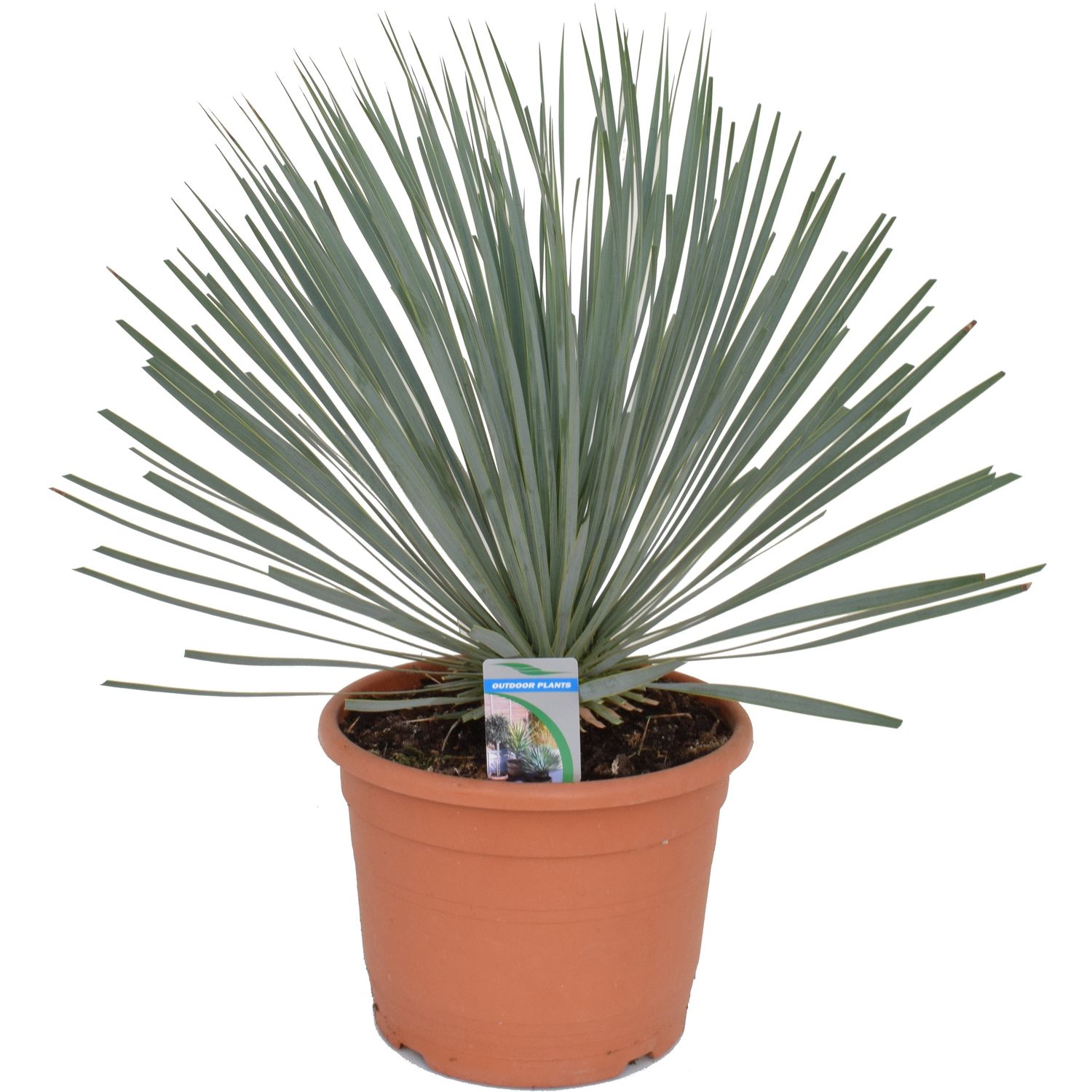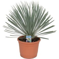 Ce Yucca Rostrata compte parmi les plus beaux. De belle stature, formant un tronc épais surmonté d'une superbe boule hérissée de mille feuilles étroites vert-bleuté. Il s'installe aussi bien dans un décor exotique ou contemporain. A noter que sa croissance est lente. Sans entretien particulier, il e