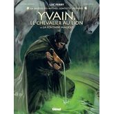 YVAINC LE CHEVALIER AU LION PREMIERE PARTIE : LA FONTAINE MAGIQUE. A la cour du roi Arthur, le chevalier Yvain entend parler d'une fontaine extraordinaire, sise au coeur de la forêt de Brocéliande, qui déclenche tempêtes et miracles. En découvrant sa magie, il rencontre aussi son protecteur, le seigneur Esclados le Roux, qui le défie en duel. Vainqueur, Yvain rejoint le château du seigneur, où il s'éprend immédiatement de dame Laudine, la veuve du défunt Il parvient à se faire aimer de la jeune femme, l'épouse et devient à son tour gardien de la fontaine. Mais la vie placide de châtelain lui pèse vite, d'autant que le roi Arthur l'incite à l'accompagner prouver sa bravoure au fil de tournois, batailles et démonstrations de vaillance. Yvain saura-t-il faire preuve de courage et de fidélité à la fois envers sa dame et envers son souverain ?