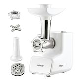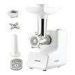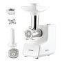 Découvrez le hachoir électrique Zelmer ZMM3511B, un appareil puissant de 1500 W permettant de hacher jusqu'à 2 kg de viande par minute. Conçu en métal avec une finition élégante blanc et argenté, il allie robustesse et design moderne. Compact et pratique, il est doté d'un interrupteur marche/arrêt,
