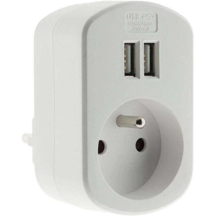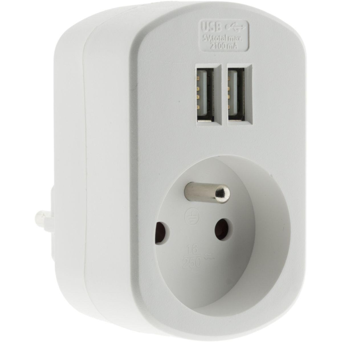 Chargeur 2P + T + 2 USB 2.1A BLANC