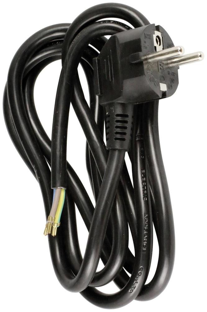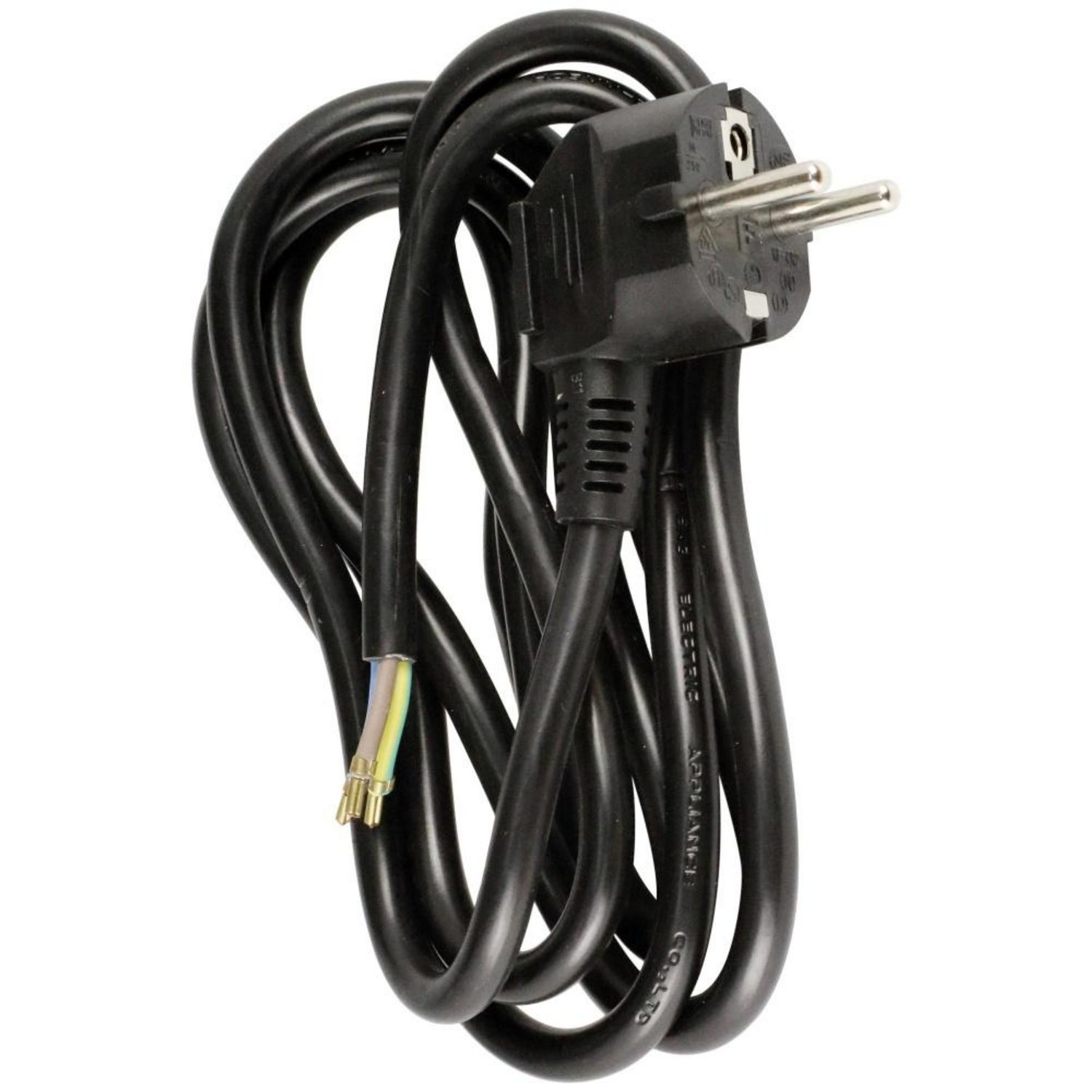 Cordon noir de remplacement de câble d'alimentation électrique pour appareils ménagers avec prise 2P+T 16A. Câblé en HO5VV-F 3G1,5mm² de longueur 2m. Puissance max 3680W sous 230V~.