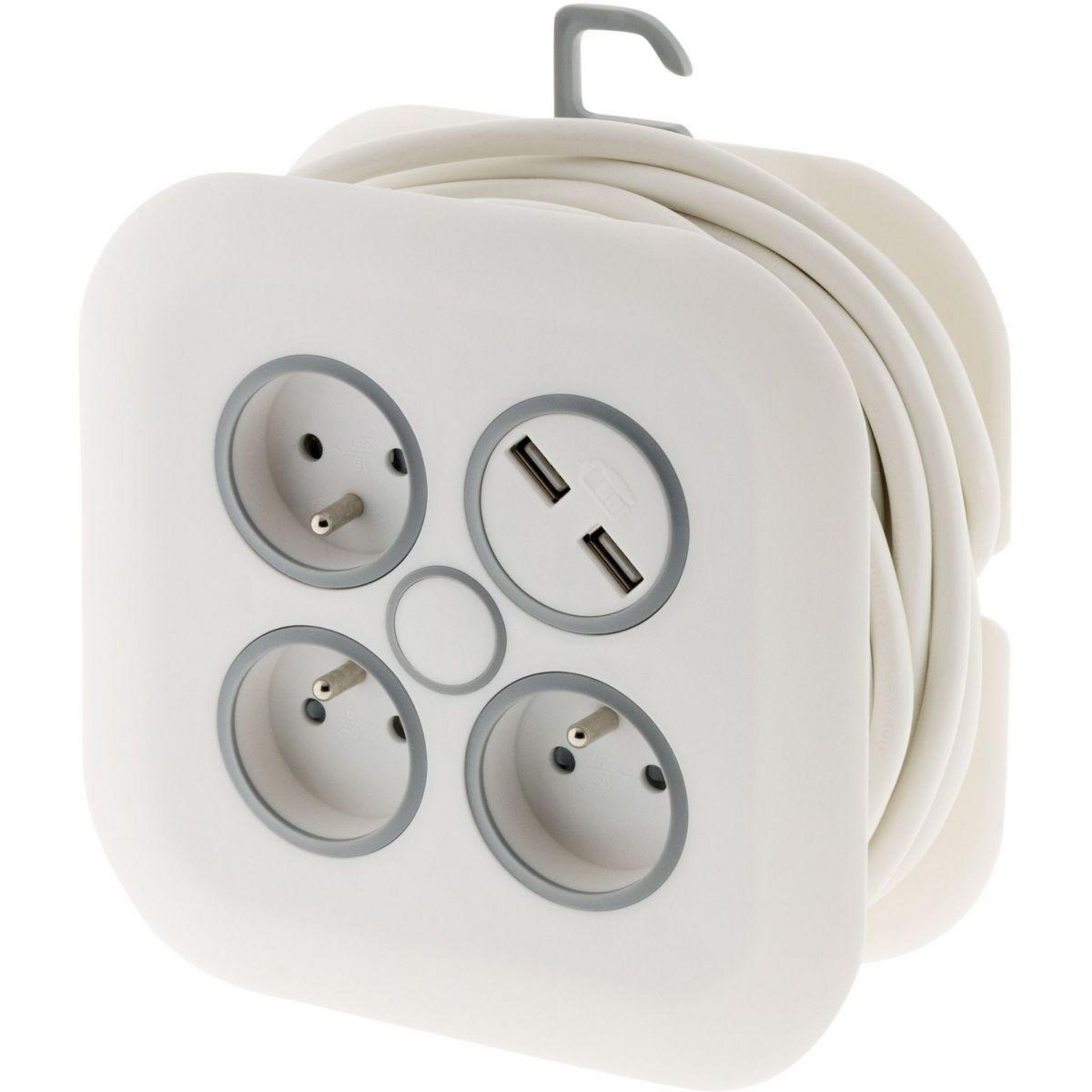 Enrouleur 7m 3x16A + 2 USB 2.4A Blanc