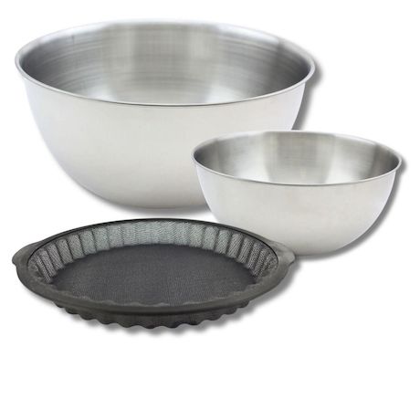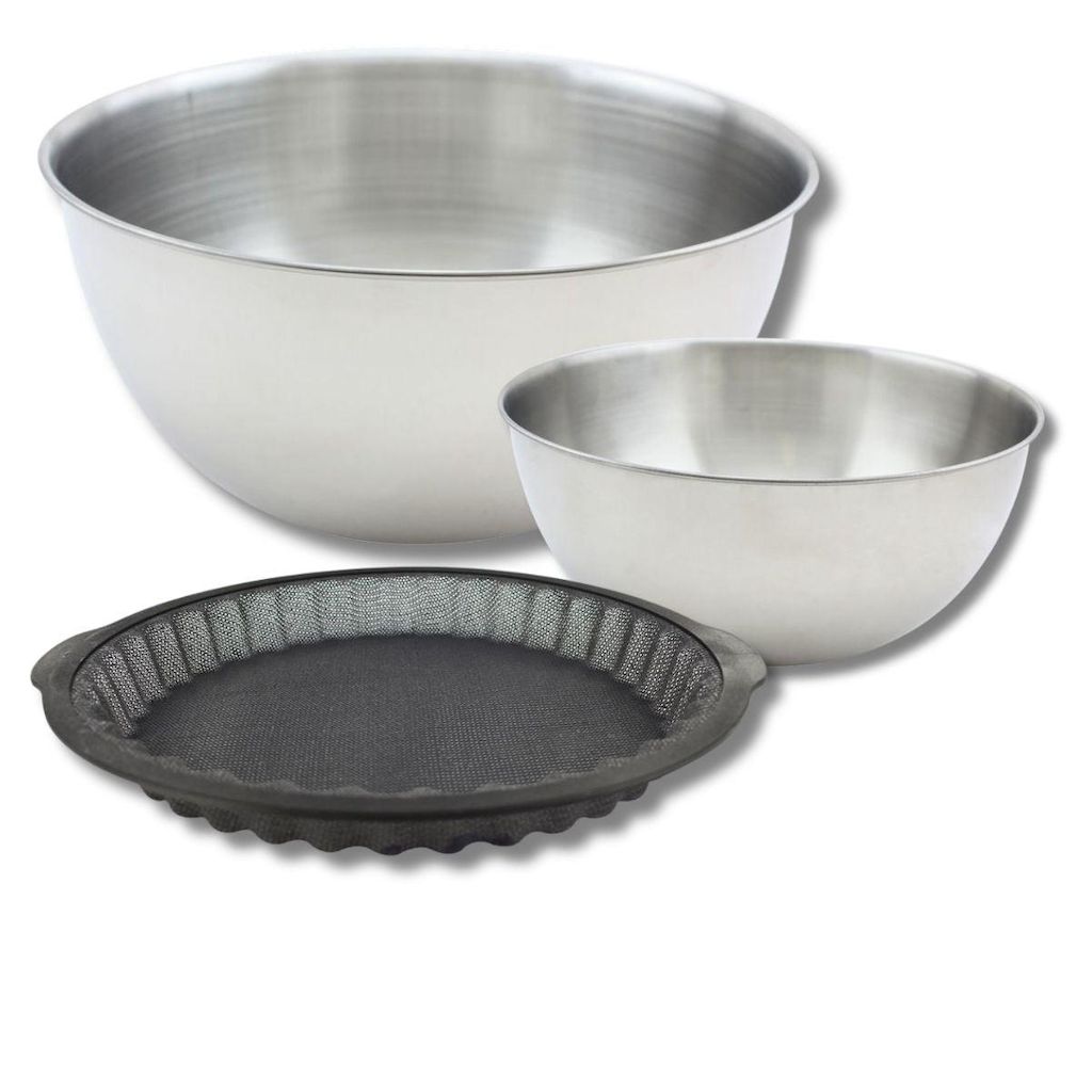 Découvrez notre lot exceptionnel comprenant un moule à tartes Zenker de 25 cm en silicone fibre de verre, parfait pour réaliser des tartes croustillantes, ainsi qu'un bol à mixer Fackelmann de 25 cm et un autre de 20,5 cm en inox, idéaux pour toutes vos préparations. Complétez votre expérience culin