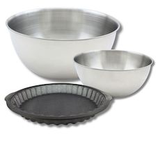 Ensemble avec 1 Moule à tarte en silicone fibre de verre, 1 spatule Zenker et 2 bols à mixer en inox Fackelmann