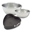 Ensemble avec 1 moule gâteau cœur, 1 spatule Zenker et 2 bols à mixer en inox Fackelmann
