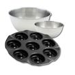Ensemble avec 1 Moule pour 8 beignets au four, 1 spatule Zenker et 2 bols à mixer en inox Fackelmann