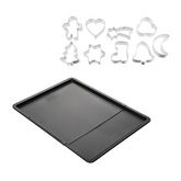 La plaque à pâtisserie est extensible ce qui vous permet de réaliser plus ou moins de biscuits en fonction de vos besoins. Cette plaque de four est compatible avec tous les fours.. Elle est associée ici à un lot de 9 emporte-pièces sur le thème de Noël.