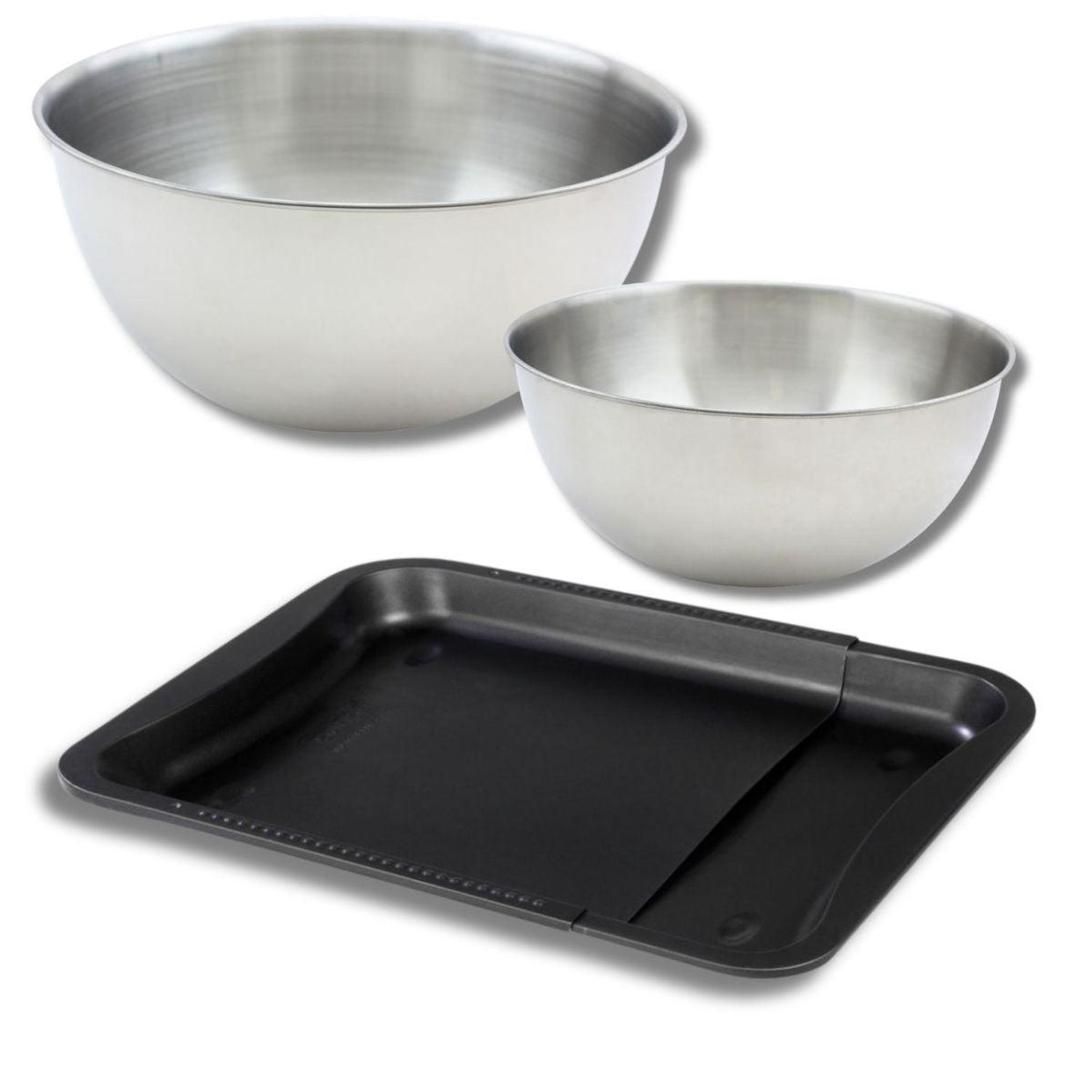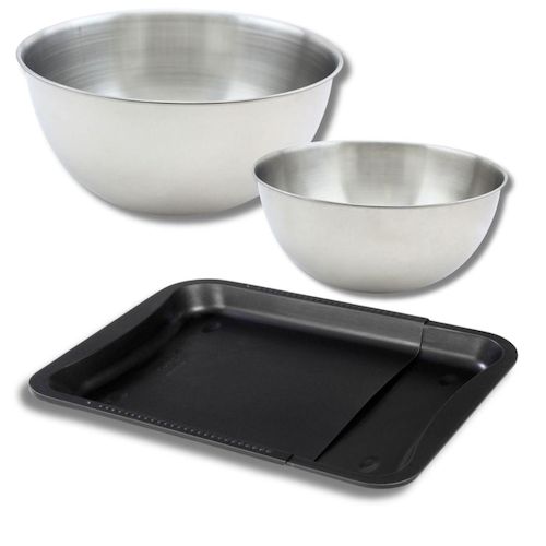 Ensemble comprenant 1 plaque de cuisson extensible, 1 spatule Zenker et 2 bols à mixer en inox Fackelmann