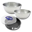 - DESCRIPTION: Ensemble parfait pour la pâtisserie avec un moule à manqué de 26 cm, deux bols inox de 25 cm et 20,5 cm, et une spatule de 25 cm